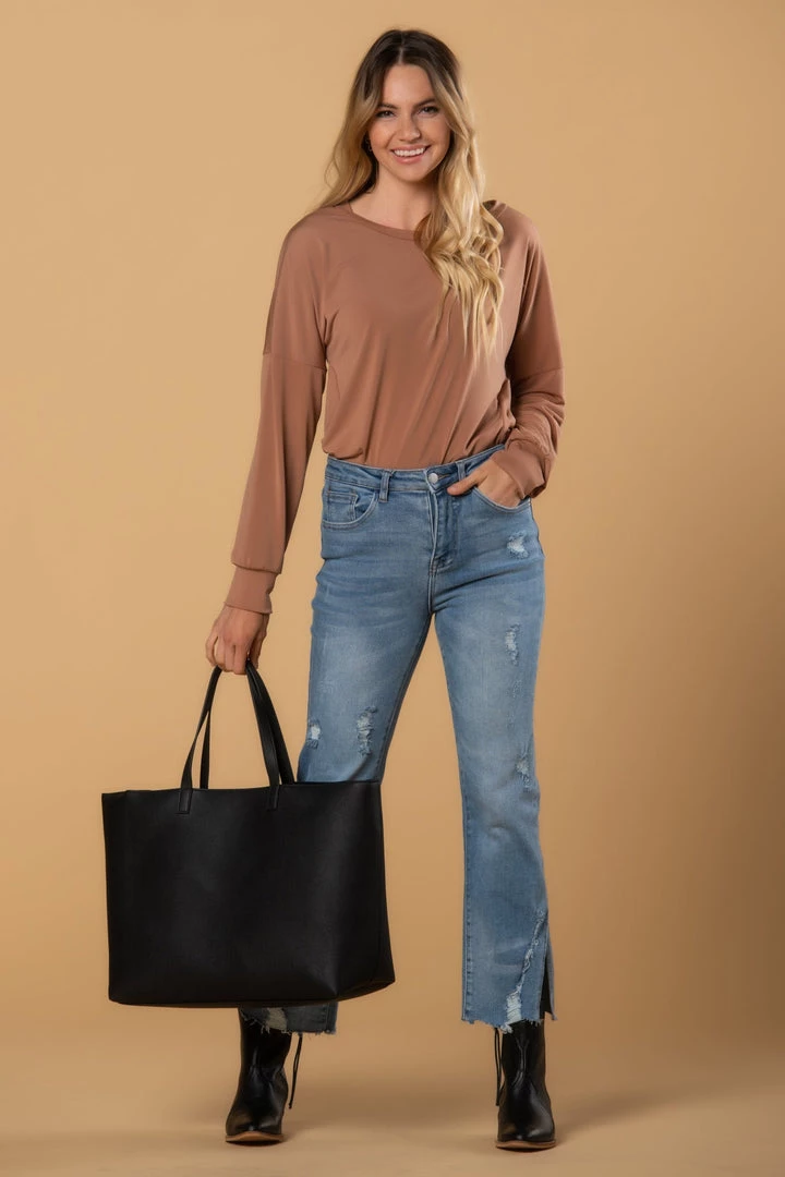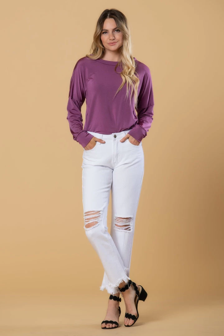 This Easy Day Top is made out of our favorite wrinkle free fabric! It features a relaxed fit, round neck, and it is lightweight and so comfy! Dress it up or down. Pairs darling with denim or our Street Joggers.