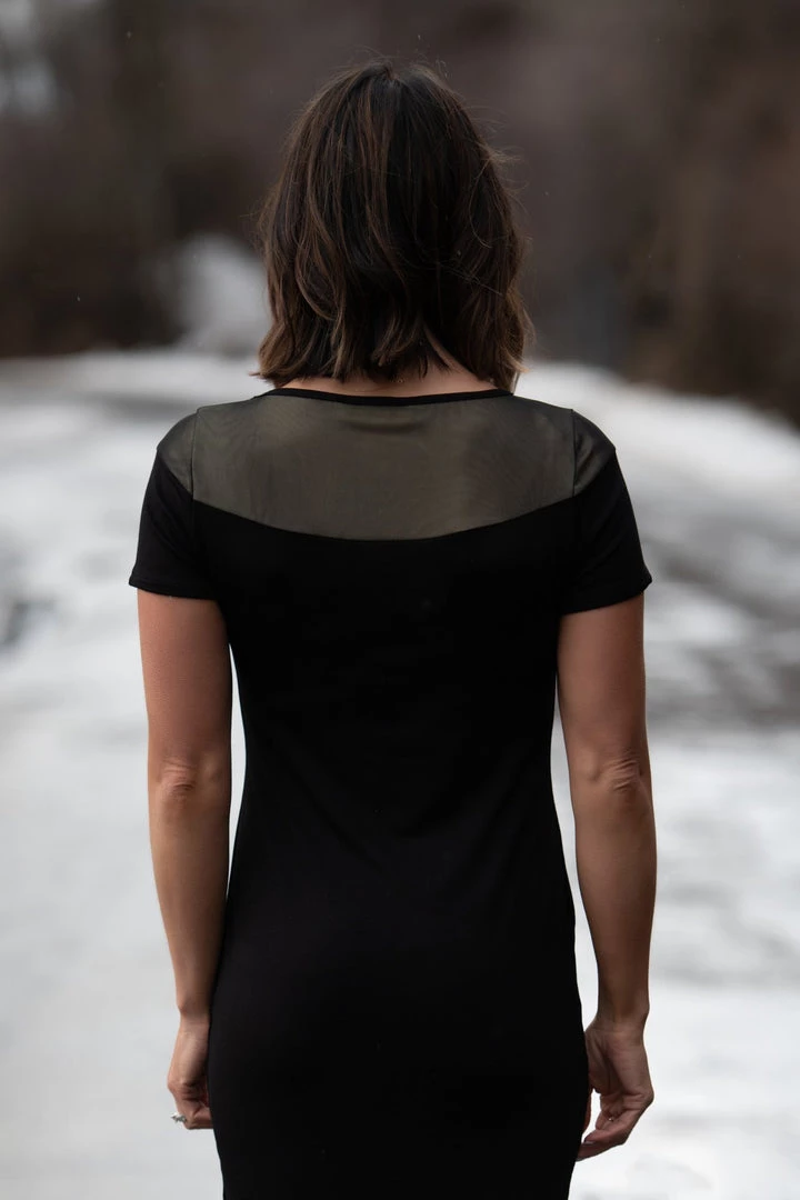 Fully lined mesh, yet creating an illusion of an off the shoulder neckline, The Night Out Dress is perfect for anything from formal events to date night. Stretchy fabric provides plenty of comfort.