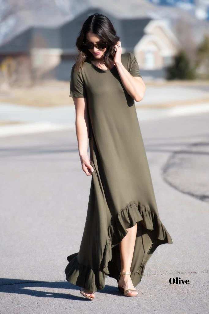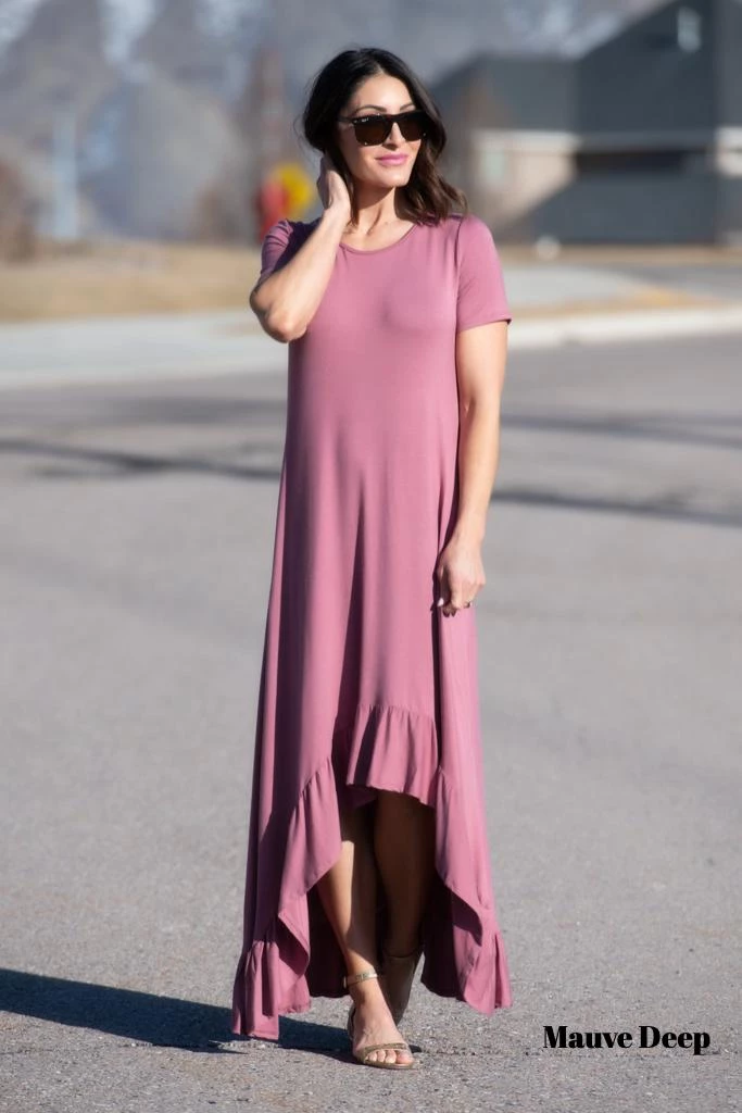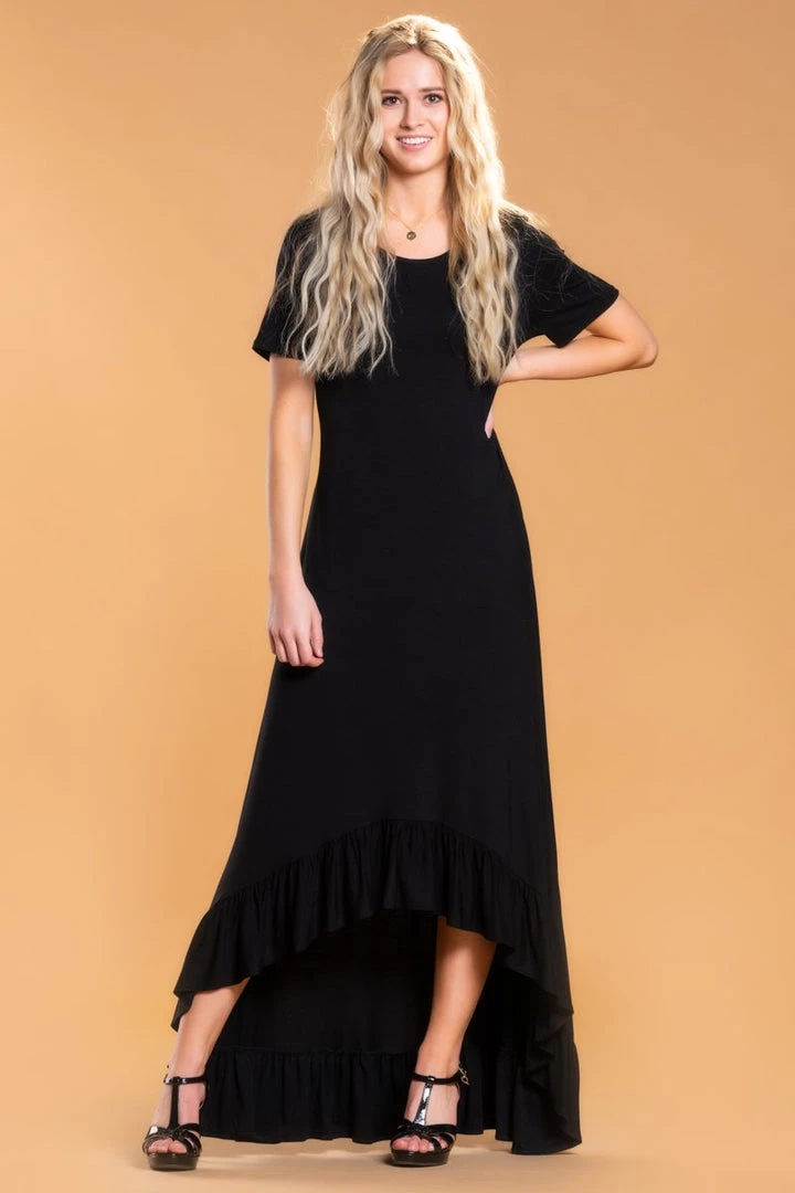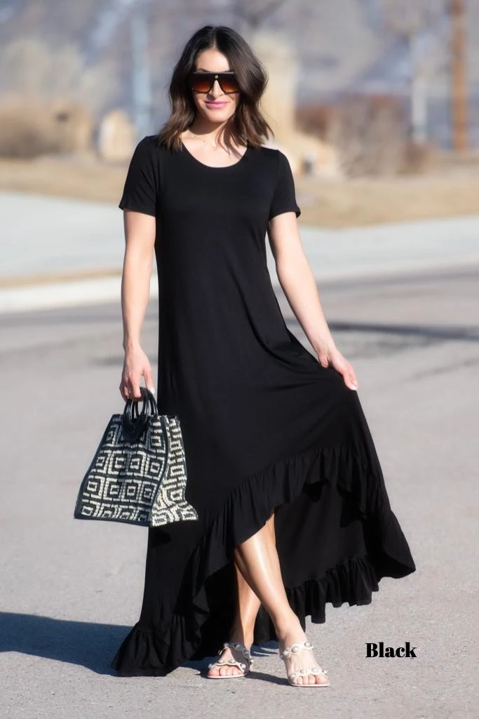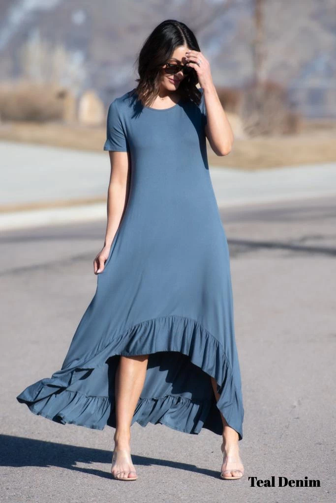 Dress up for work or play with the High-Low Jersey Dress! Made from our favorite wrinkle free fabric. You will absolutely love this midi length (in the front) High Low Jersey Dress!