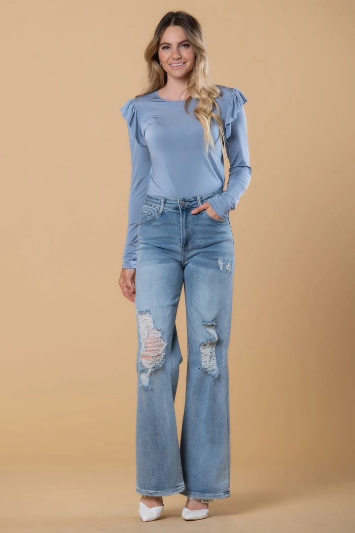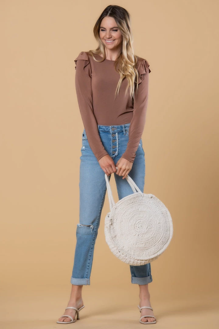 Finished with ruffles on the shoulder, this Shoulder Ruffle Top adds a playful charm to your wardrobe. You won’t ever want to take this one off!