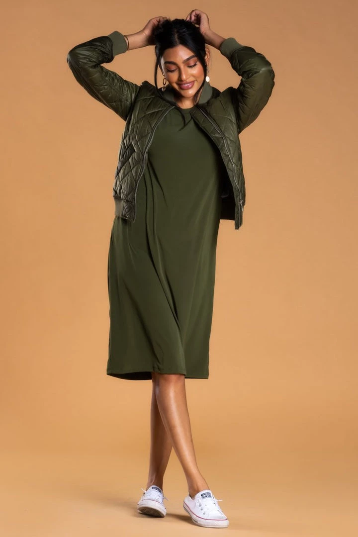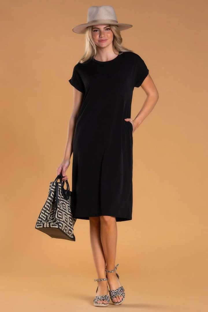 Your busy day just got better with this easy to throw on comfy dress! Made from our fabulous wrinkle free fabric and similar to our Pocket Tee Dress, the Luxe Dress has a longer and more slim cut. Boasts versatility by dressing up with heels or down with sandals or flip flops!
