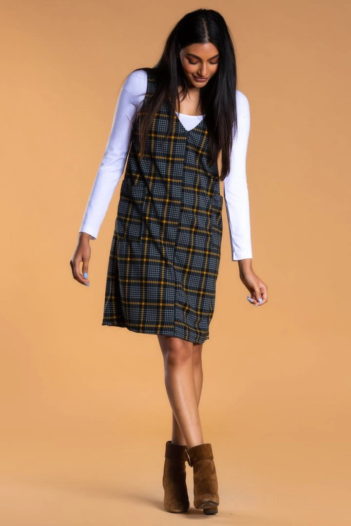 Our Overall Dress brings undeniable charm and a playful feel to your closet. Made from our favorite ponte fabric, you know this dress is not only high quality, but very comfortable!