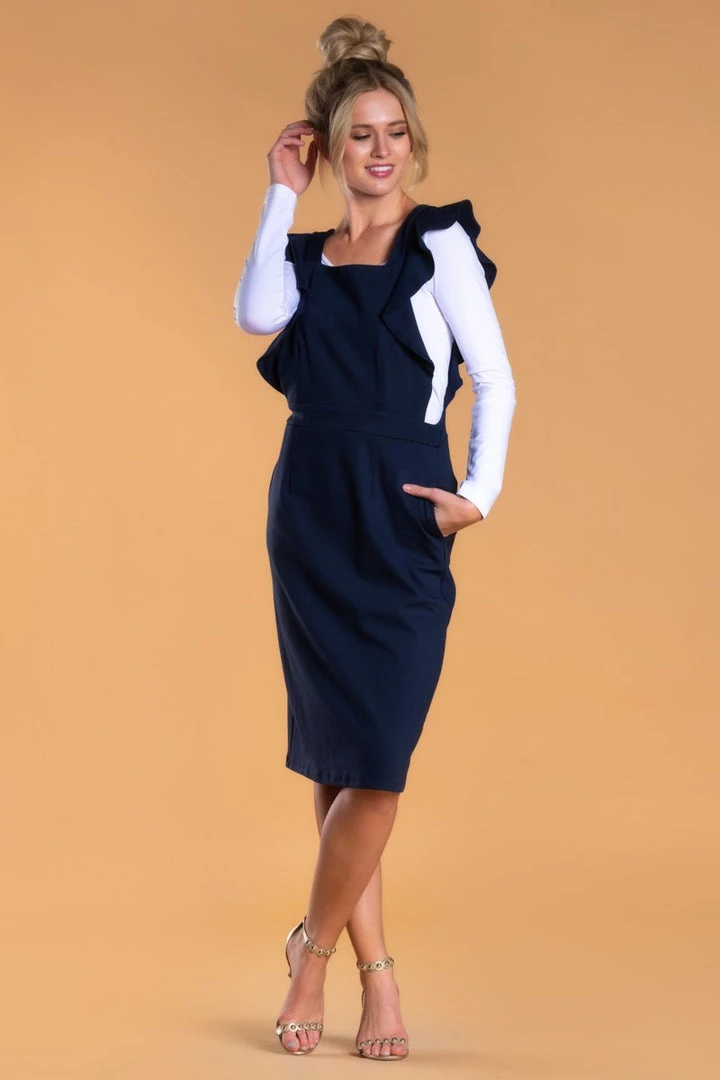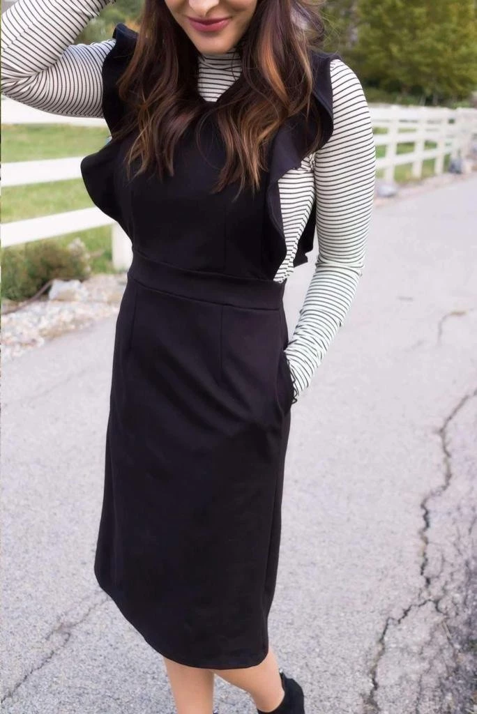 The Brigitte Brianna Ruffle Overall Dress is made from our favorite double knit high-quality fabric! Plenty of structure and stretch for comfort! Ruffled straps complete this very versatile overall dress that is perfect for all seasons!