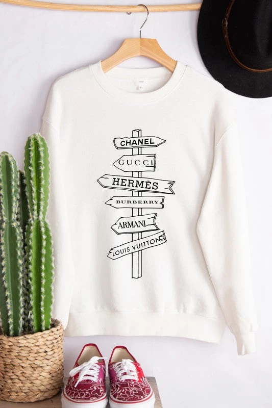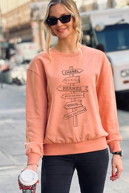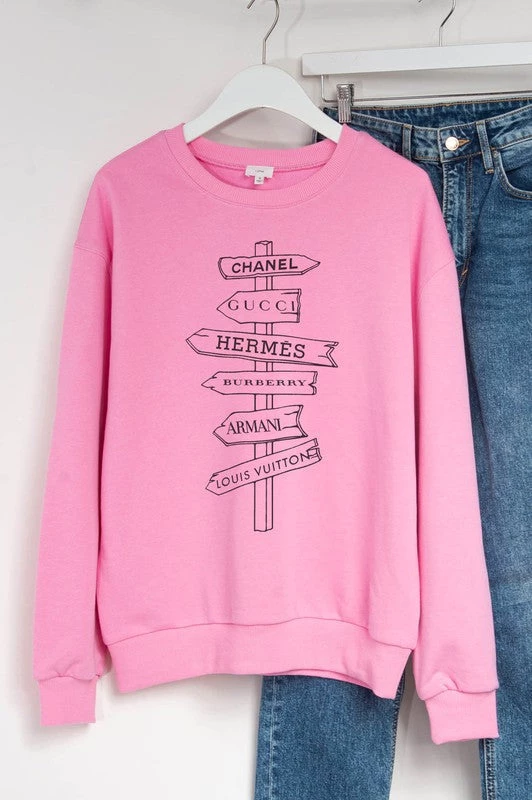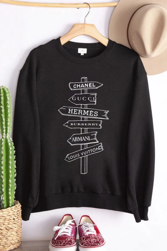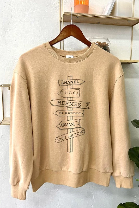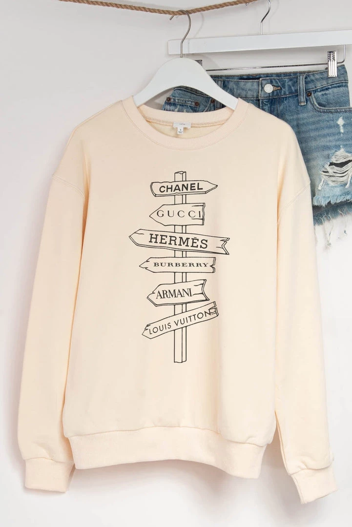 Luxury fashion brand direction graphic print cotton sweatshirt in several colors.