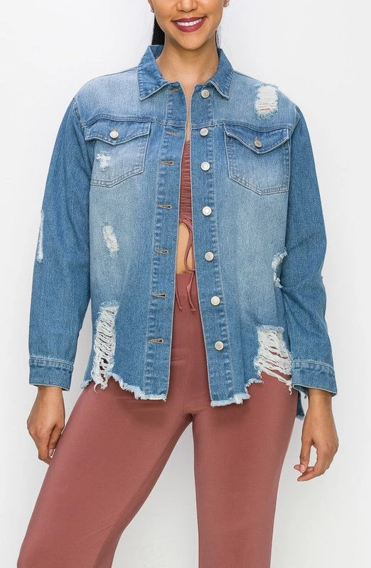 This darling denim shirt jacket is perfect for layering over anything as we transition into different seasons!