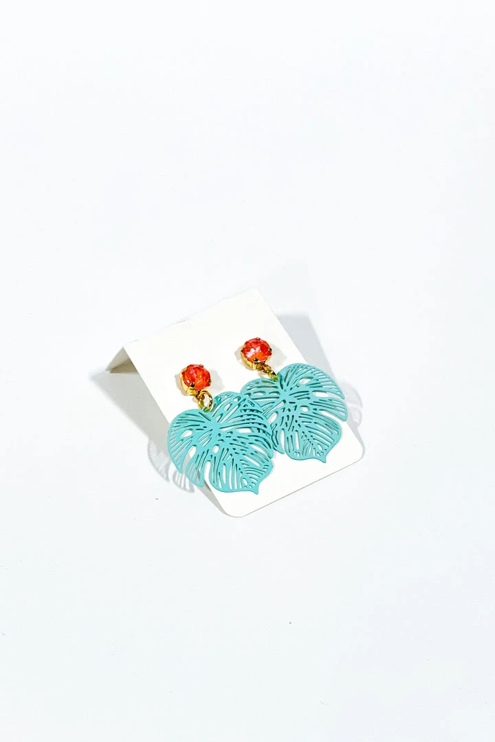 - Enameled monstera leaves with orange crystal accents.