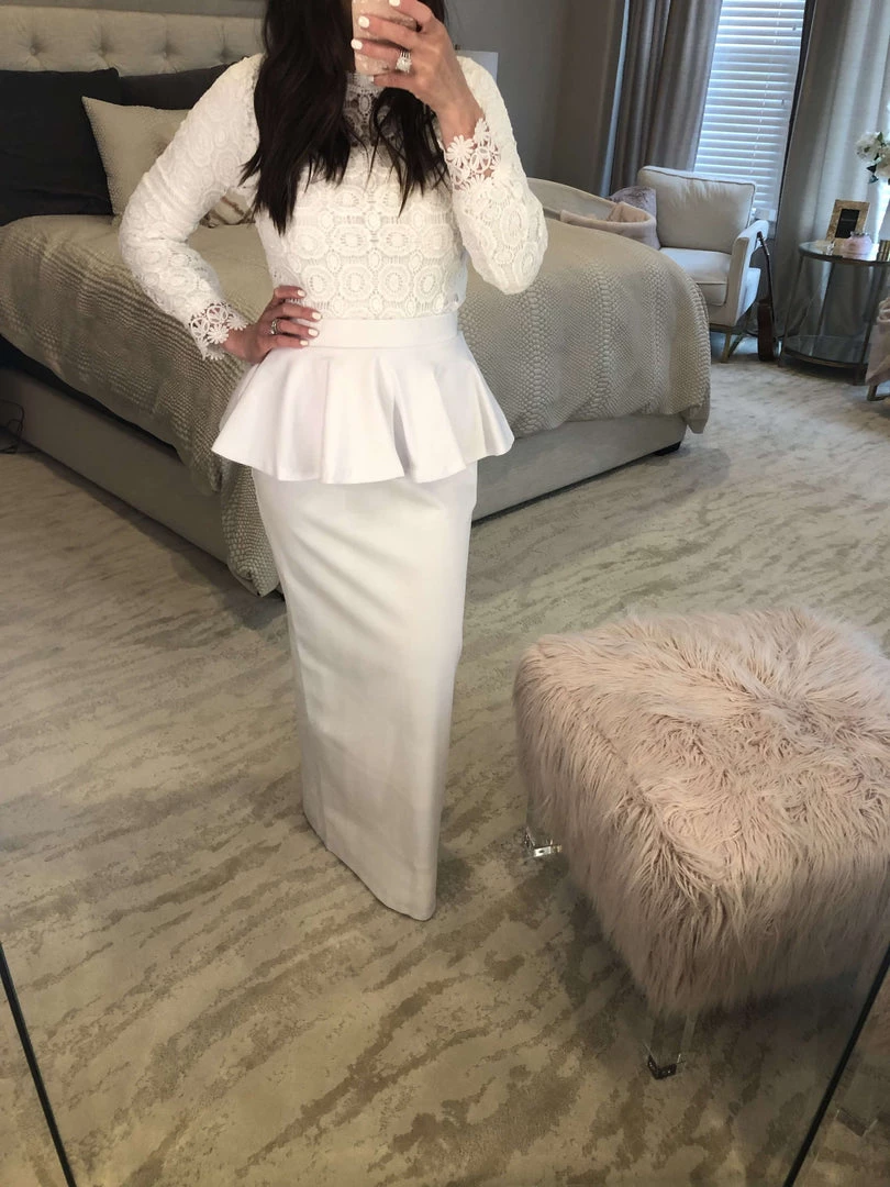 The Cherice is the only skirt in our Temple collection. It features an elastic waistband, a small modest slit in the back, and don’t forget the pockets under the gorgeous peplum ruffle detail at the waist. Made from our favorite double knit material, you will love how you look in this beautiful skirt!