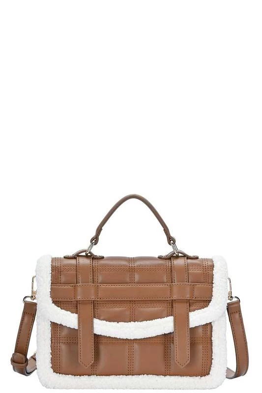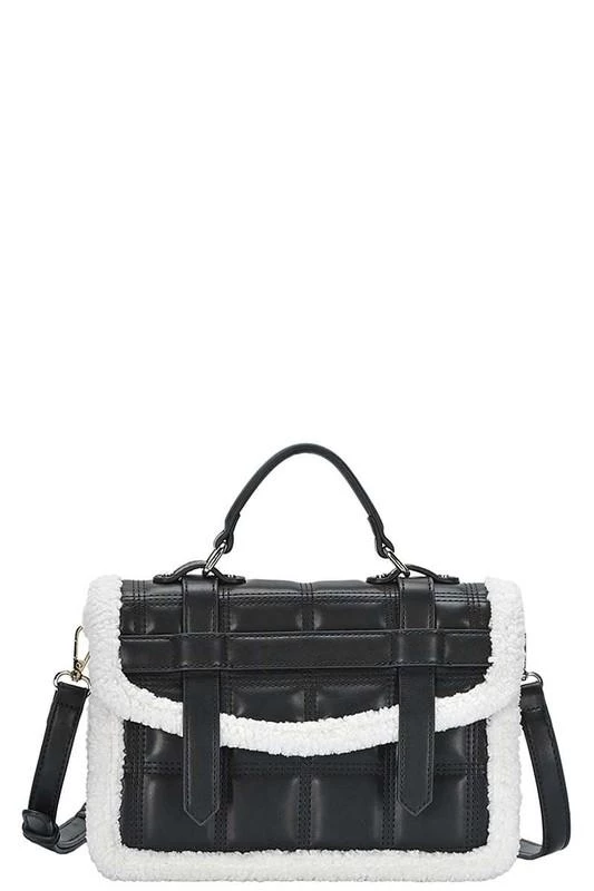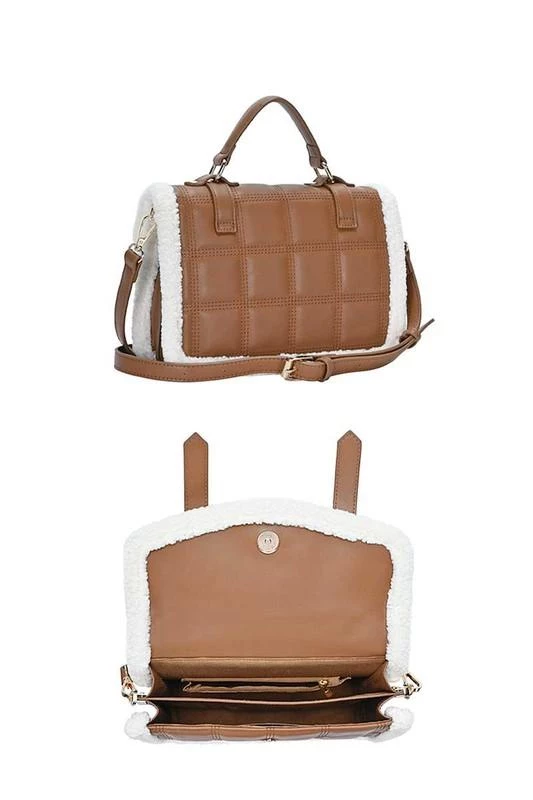 - Two tone sherpa quilt design handle tote bag.